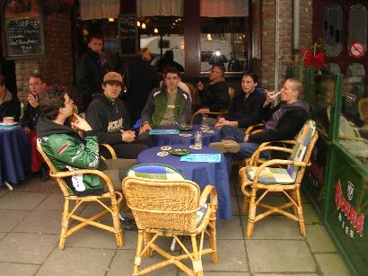 Nach diversen Fettbomben, die wir uns in den Schacht geballert haben, dann der gemütliche Teil des Abends. Jedenfalls für die "Alten" die ja alle nich mehr die jüngsten sind und den ganzen Genussmitteln im Allgemeinen nur noch in Maßen zusprechen. Die jüngere Generation ist jedoch von derartigen Verfallserscheinungen noch weitestgehend gefeit, todesmutig stürzt man sich mit spärlich beleuchteten Rädern und vernachlässigbaren Ortskenntnissen in's Maastrichter Nachtleben…