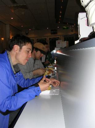Solches gibt es aber zum Glück bei unsrem Zeltplatzwirt, bei dem wir gespannt der Ankunft unseres einzigen Finishers der 250km Runde, Hr. Christoph Esswein harren. Nachdem wir ja alle den ganzen Tag "op de straat" waren, gibt's jetzt erstmal ordentlich "op de mägen" !!
